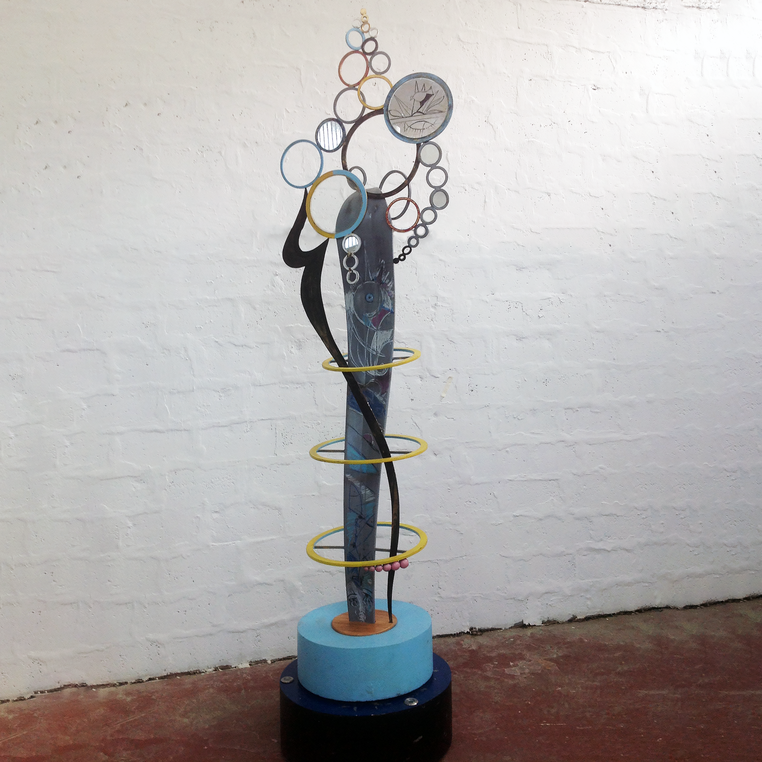 Edouard Daher's metal artifacts embody a strong sense of modern design. His works exhibit a lightness and verticality, incorporating vibrant color elements and playful movements.
